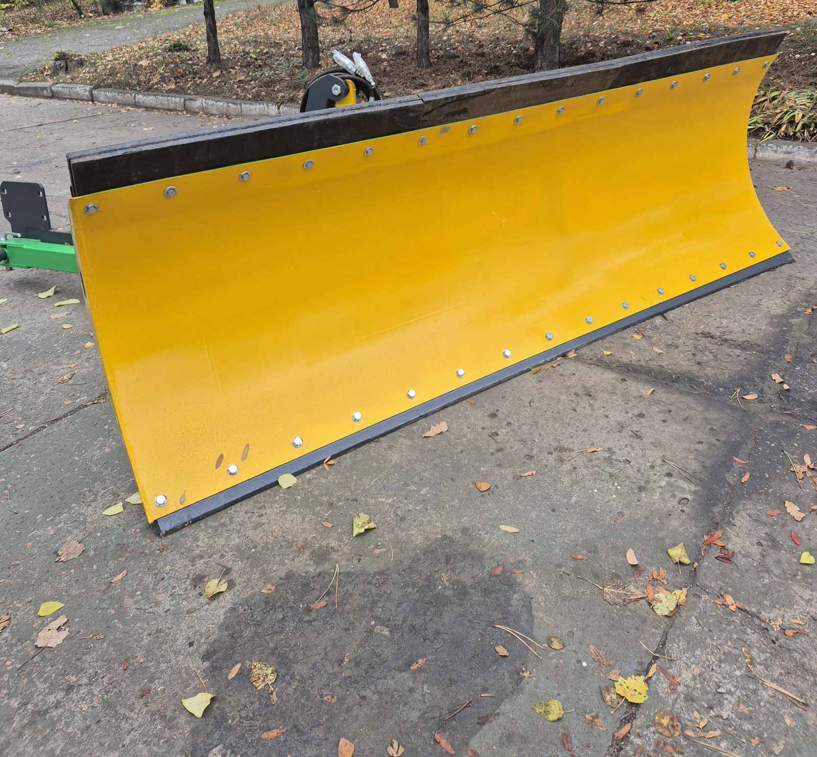 Відвал має надійну сталеву конструкцію, стійку до зносу та механічних навантажень. Робоча частина оснащена гумовою або металевою смугою, що запобігає пошкодженню дорожнього покриття.