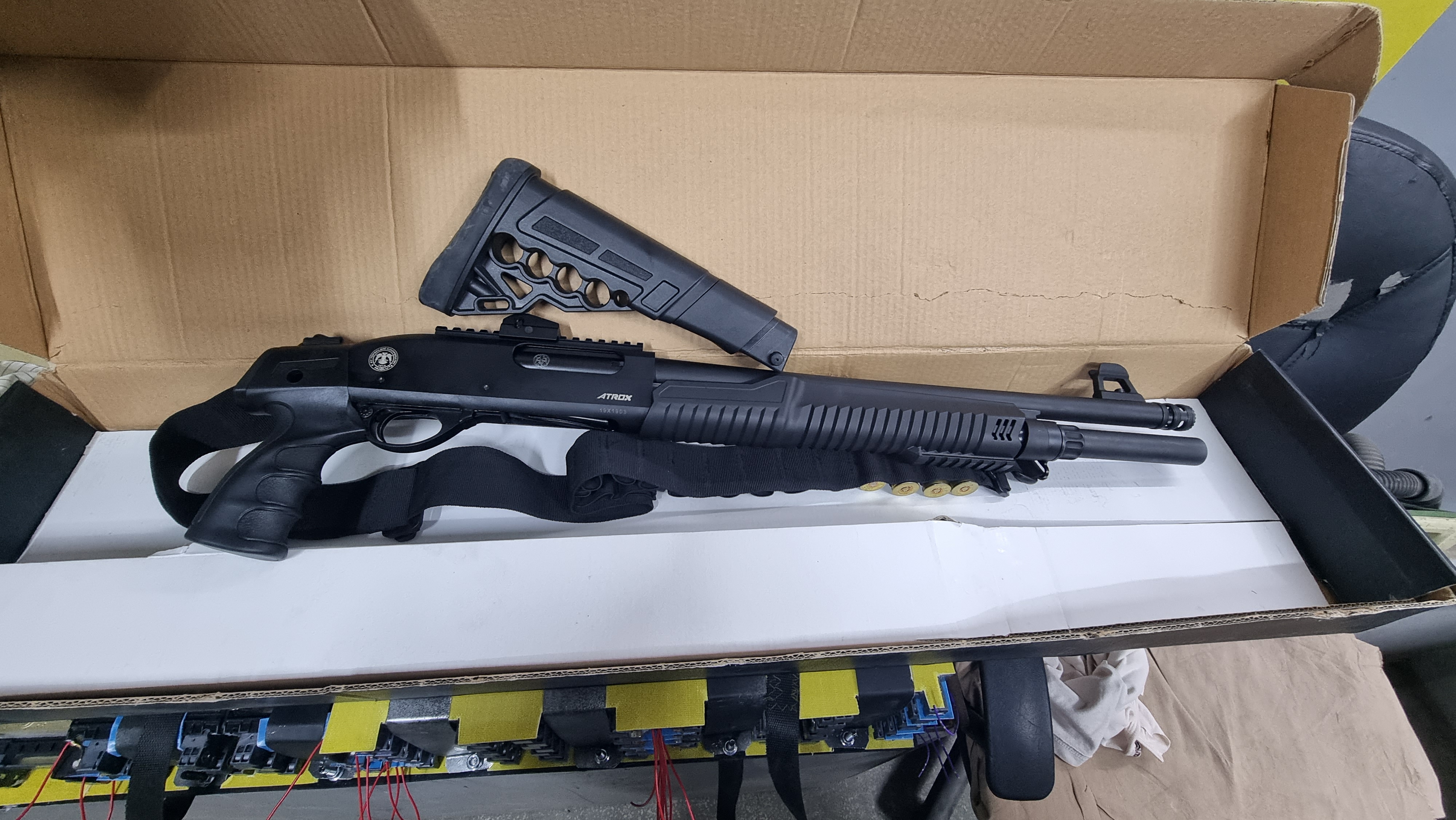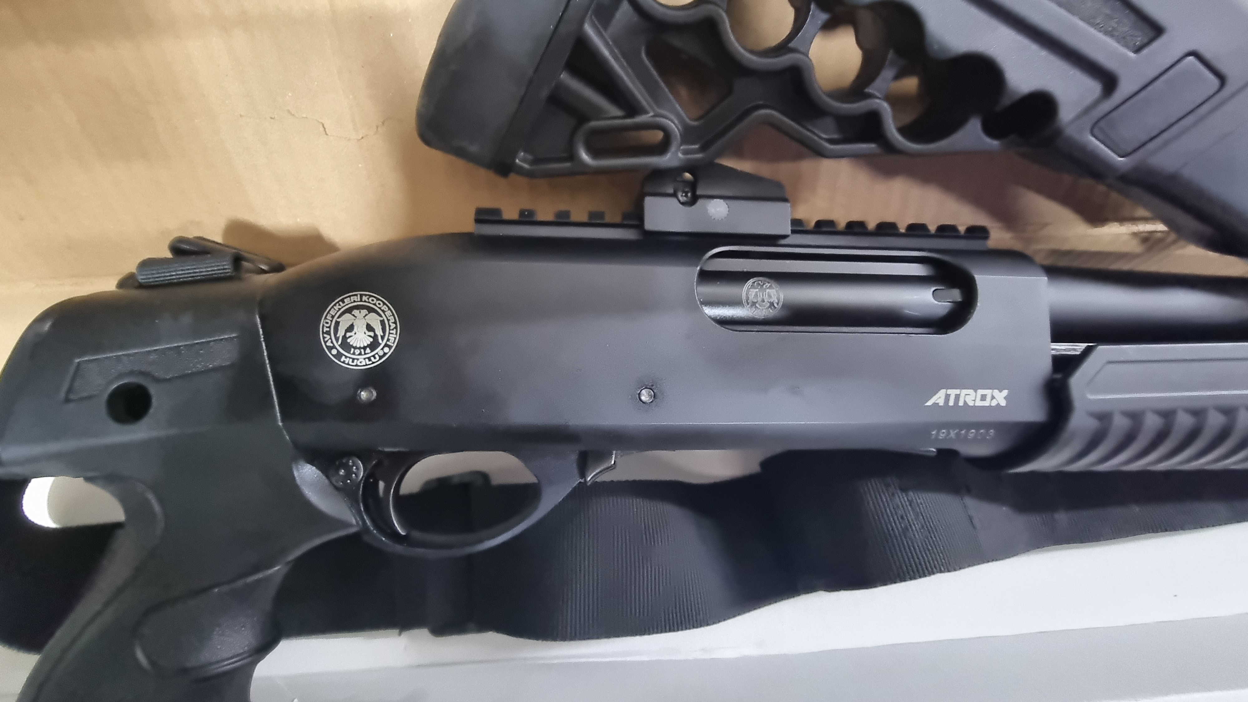 HUGLU ATROX T система перезарядки помпова, калібр 12, ствол 46 хромований, місткість магазину 7+1, на ствольній коробці та цівці є планки вівера, стан нової, як з магазину, настріл пачка картечі і пачка куль, додаткові фото скину в приват, є заводська упаковка, ціна за все що на фото,через дозвільну систему.