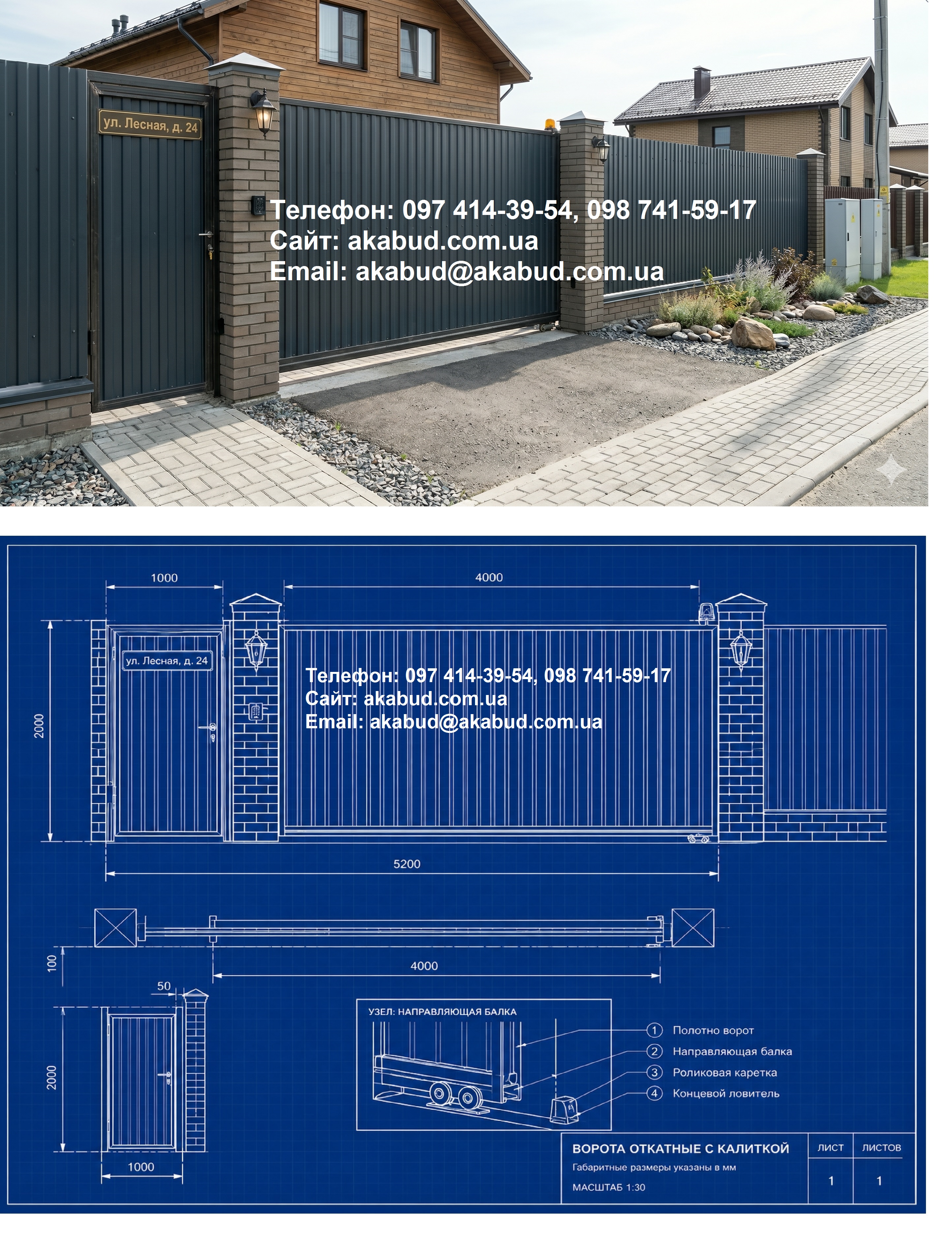 • Ворота та в’їзні групи: Відкатні, розпашні, з можливістю встановлення автоматики.