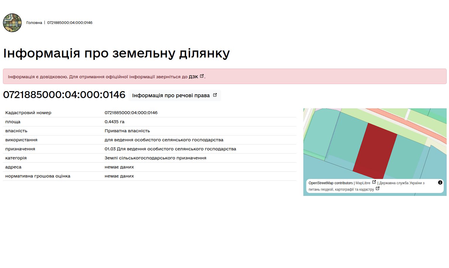 Кадастровий номер: 0721885000:04:000:0146 xxxxxxxxxx:xx:xxx:xxxx