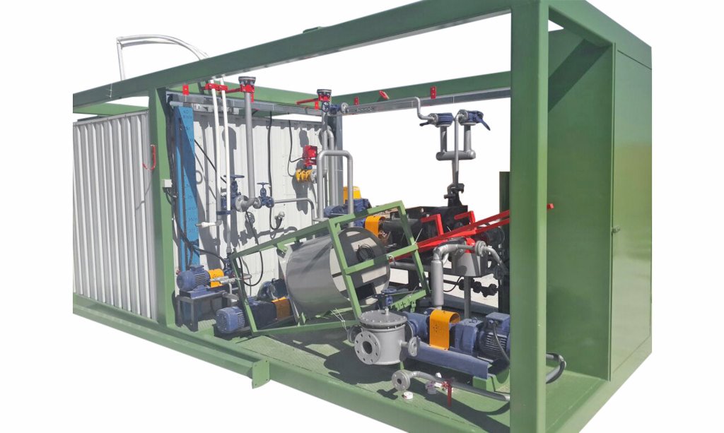 Система складається з резервуару для подачі бітуму, розчинного резервуару, бітумного насоса та млина. Подача матеріалу регулюється з дозуванням, і за бажання вони можуть бути повністю автоматизовані за допомогою комп'ютера.