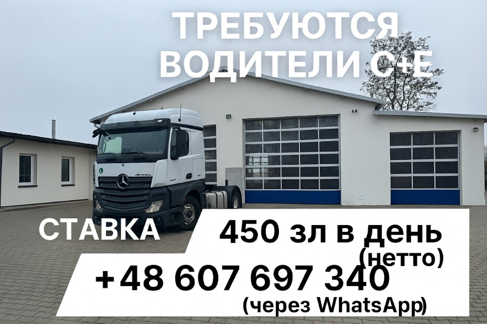 Водій категорії C+E, міжнародні маршрути, вакансія