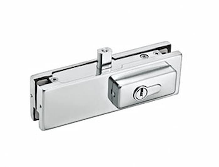 Замок для скляних маятникових конструкцій встановлюється в нижній та/або верхній кут дверей.